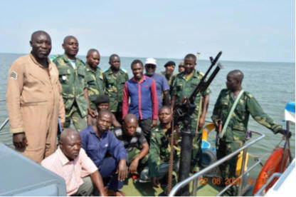 ![]() NaFIRRI survey team with DRC Marine gunboat crew |