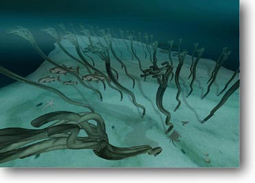 to shallow water, say from 3 to 12 feet deep.![]() Artist's rendering of Artificial Kelp Bed Link to larger view